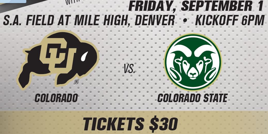 University of Colorado Boulder vs Colorado State Rams at Sports Authority Field at Mile High on Friday September 1st at 6 pm. Tickets are discounted to $30! Use promo code 2017CCSF. Proceeds will be used to fund innovation in our students classrooms throughout Cherry Creek Schools.